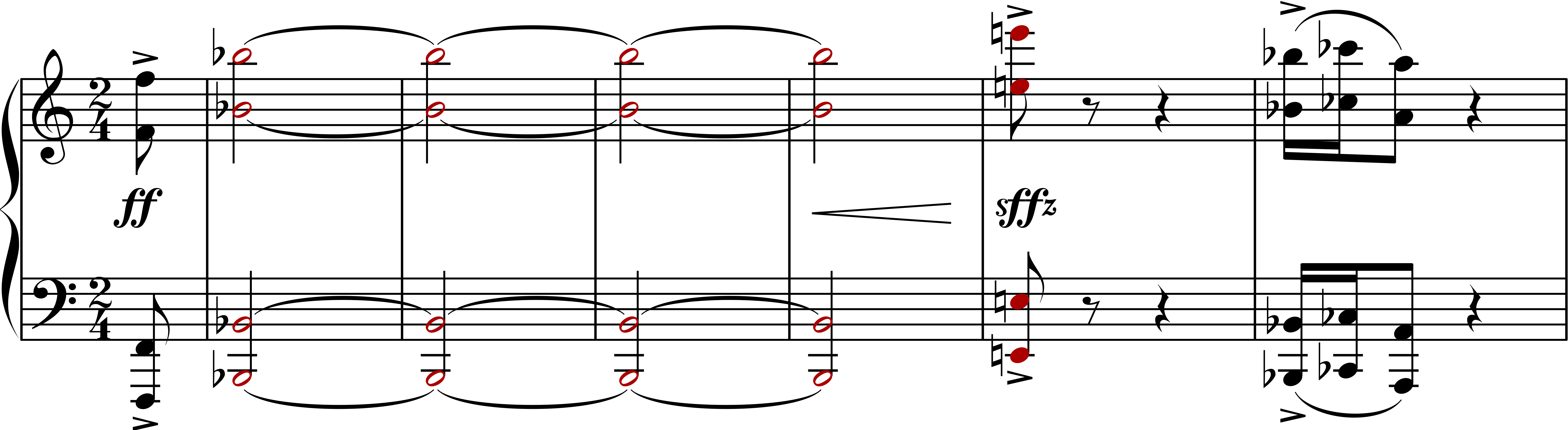 A tritone splits this scale exactly in half. So, in the above example, C4 to C5 is an octave, and the F-sharp is in the very middle, the seventh note with six pitches on either side. So the distance from C to F-sharp itself is what we call the tritone. If you want to get more specific, that distance can either be made up of three adjacent whole tones or six half steps. Throughout the creation and study of western classical music, the tritone has often been avoided for its feeling or sound of restlessness and discord. It has even been referred to as the “diabolus in musica” (or “the devil in music”). Especially in the medieval and renaissance periods, it was generally avoided — especially in sacred music. In later periods of composition, the tritone would later be included by numerous composers, especially as a musical depiction of tension and release.