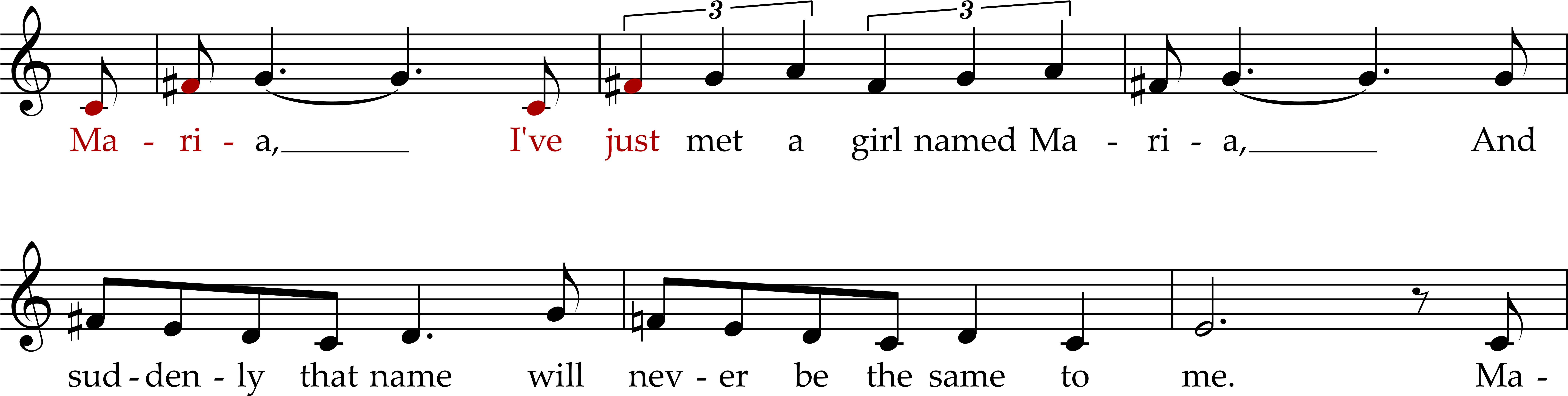 Bernstein brilliantly carries the use of the tritone into Tony’s second song in Act One, “Maria.” The song, which bridges the gap between “The Dance at the Gym” and “Tonight,” is a representation of Tony’s immediate infatuation with Maria in that all he can seem to hear or say is her name. But, by using the tritone throughout the song, we hear the foreshadowing that this relationship is doomed from the beginning.